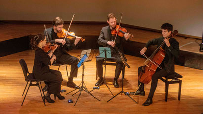 Dvořáks farbenreiches Werk wurde mit kluger Balance zwischen Innerlichkeit und Energie entfaltet, ohne je den Bogen zu überspannen. Besonders im Adagio entwickelte sich eine fast meditative Atmosphäre: das Cello mit tiefer Wärme, die Bratsche mit samtener Mittellage, darüber die beiden Violinen, die im Wechselspiel von inniger Melodie und filigraner Begleitung den Raum mit einem schwebenden Klang füllten. Im dritten Satz zeigte sich, wie sehr das Quartett die folkloristische Vitalität Dvořáks verinnerlicht hat. Es war kein aufgesetztes tänzerisches Element, sondern ein organisch gewachsener Rhythmus.